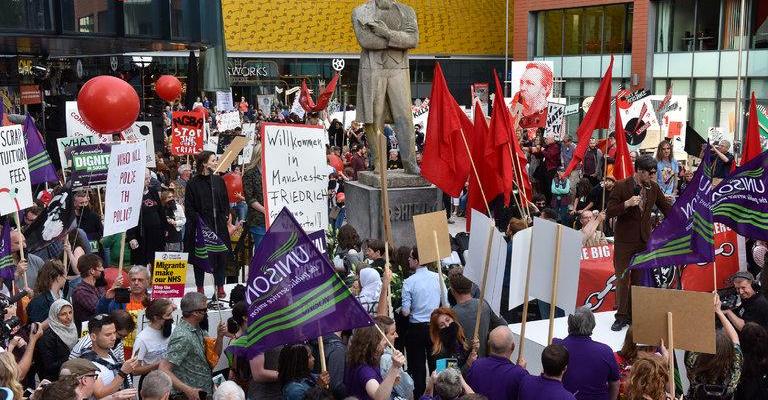 Манчестер взагалі-то до біса лівацьке місто. Лейбористи там почуваються, як у себе вдома. І відповідно соціалістичними ідеями заражені багато хто. От одного митця, якого звати Філ Коллінз (начебто не той), торкнуло по темі Енгельса, який в Манчестері багато часу жив і працював.