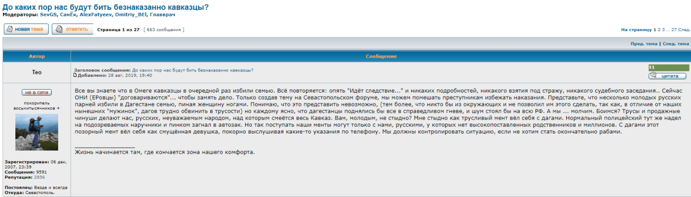 От натрапив я на один топік у легендарному севастопольському форумі – називається він До каких пор нас будут бить безнаказанно кавказцы?.