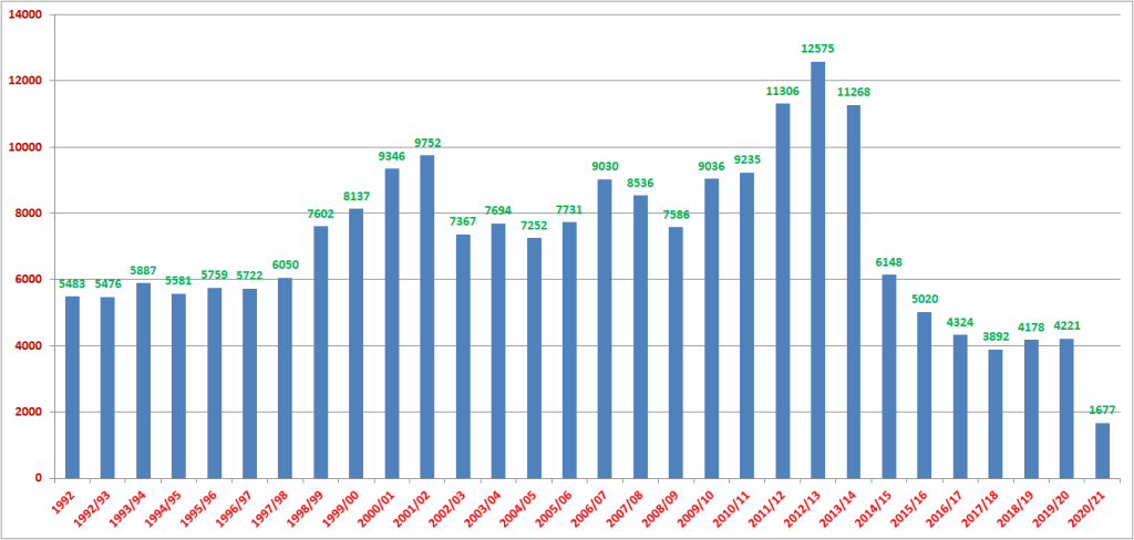 1996/97 – 26 000 (Ворскла, Полтава)