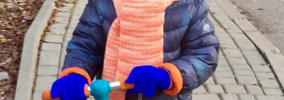 Днями наш молодший син – у якого сьогодні саме день народження, перша важлива віха у житті (3 роки!) – пішов у дитсадок. Оскільки уже пізня осінь, одягати його довелося тепло. І тут дружині під руку попався незамінний листопадовий предмет – шалик. Гарний такий шалик, м’якенький і теплий. Ось він, на фото. І Назар пішов у садок у цьому шалику.
