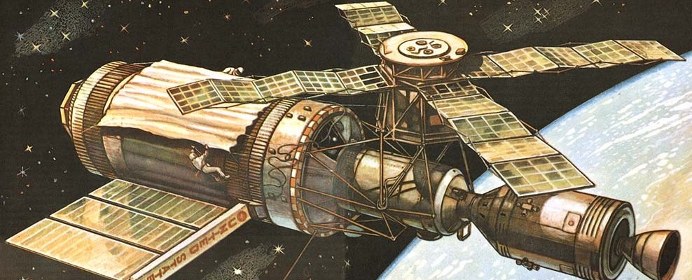 Звісно, станція була радянська – бачите, на ній написано “Мир”. Та і ракетоплани теж – а які ж іще могли туди літати? 🙂