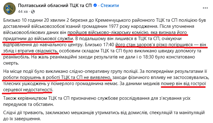 Для початку – повідомлення від Полтавського ТЦК.