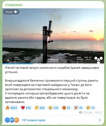 А ось як реагував він же на запуски Starship (які теж були проблемними) ще кілька місяців тому.